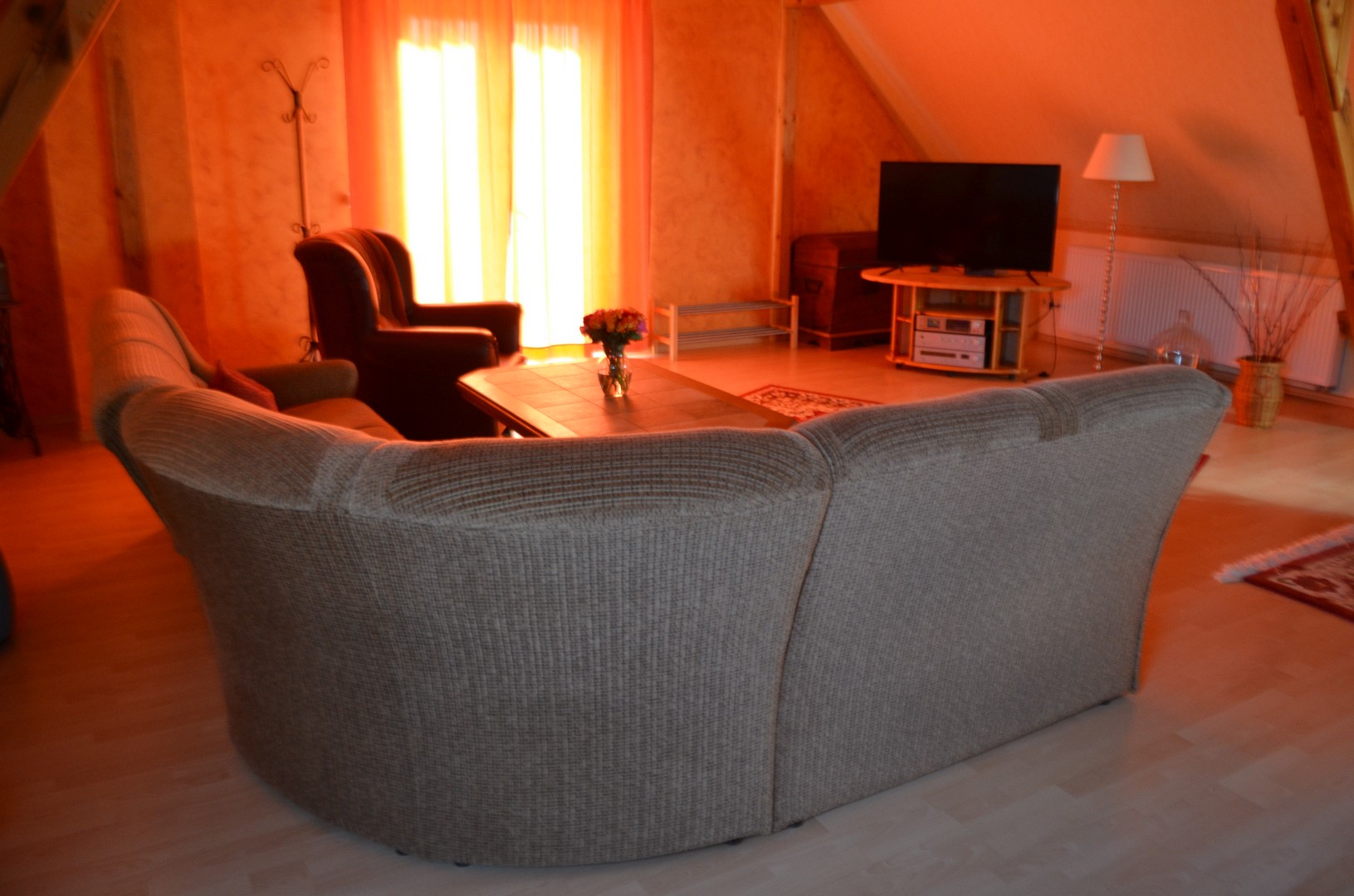 Im Wohnzimmer steht Ihnen ein Fernseher mit SAT-Anschluss sowie Radio und DVD-Player zur Verfügung.